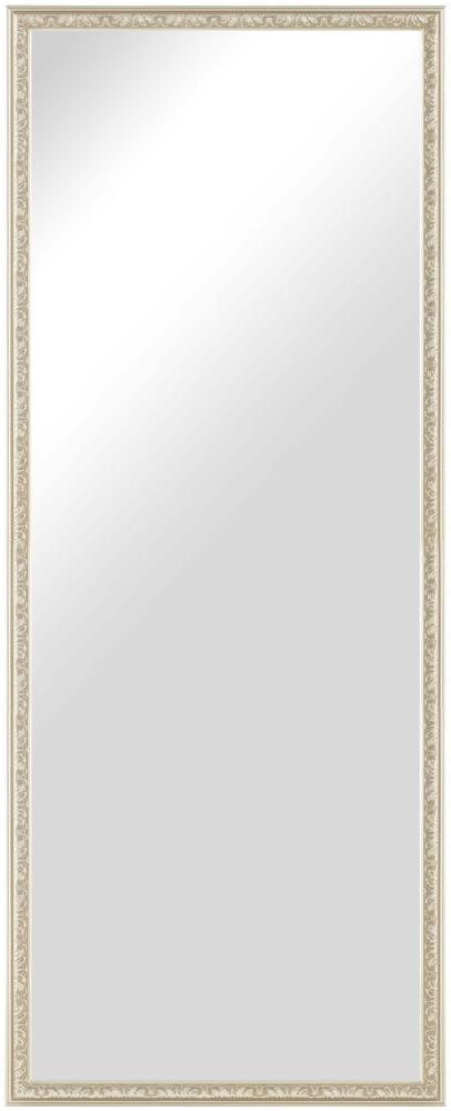Lass diesen zeitlosen, eleganten Spiegel die Wände bei dir Zuhause verschönern! Der silberfarbene Rahmen des Spiegels zeichnet sich durch sein edles, nostalgisch bzw. antik anmutendes Profil mit stilvollem Ornament-Muster aus. Das klassische, stilsichere Design dieses Wandspiegels bereichert jeden Raum und macht einen echten Blickfang aus, ob als einzige Deko an der Wand oder in Kombination mit hübsch eingerahmten Bildern als persönlich gestaltete Bilderwand.