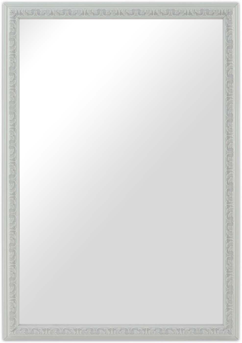 Dieser Wandspiegel ist ein stilsicheres Wohnaccessoire, welches das Licht einer jeden Lichtquelle hübsch reflektiert. Die weiße Rahmenleiste des Wohnspiegels überzeugt durch ihren eleganten, frisch und unbeschwert wirkenden Charakter sowie das dekorative Profil mit hübschem Ornament-Dekor.