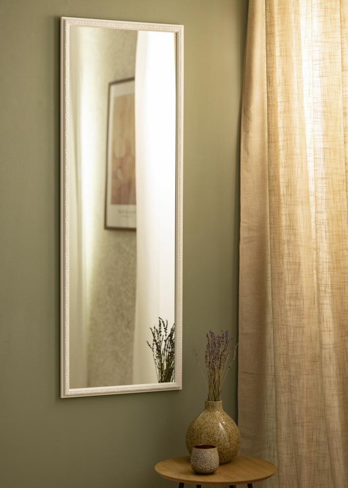 Dieser Wandspiegel ist ein stilsicheres Wohnaccessoire, welches das Licht einer jeden Lichtquelle hübsch reflektiert. Die weiße Rahmenleiste des Wohnspiegels überzeugt durch ihren eleganten, frisch und unbeschwert wirkenden Charakter sowie das dekorative Profil mit hübschem Ornament-Dekor.