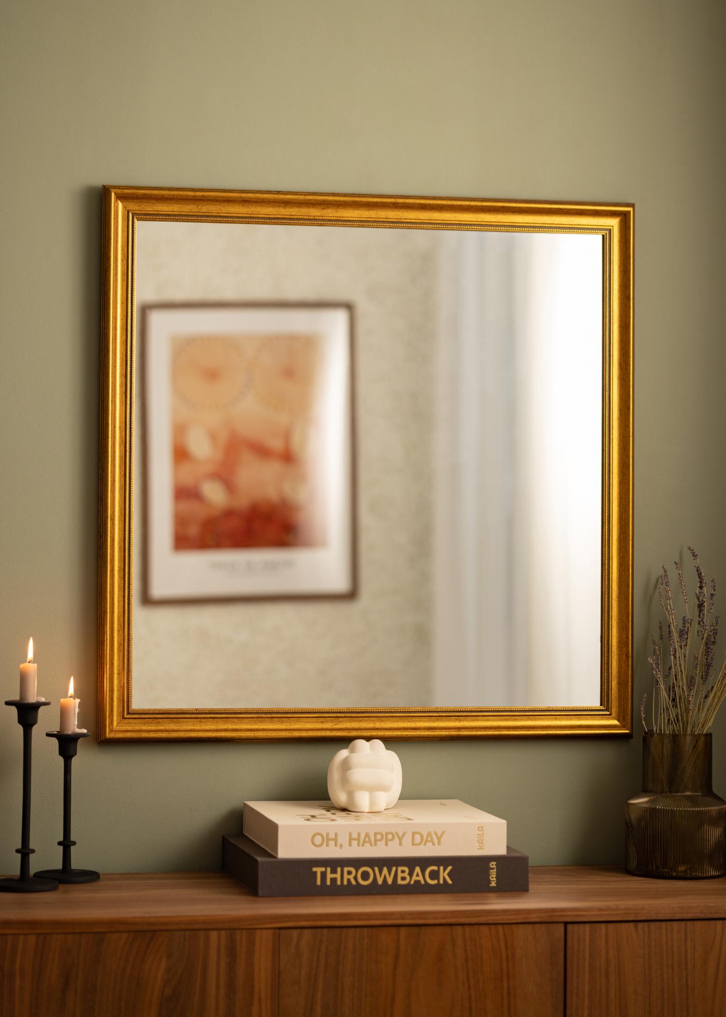 Rokoko ist eine Wohnspiegel-Serie von Estancia, die Spiegel mit schönen Rahmen im Rokoko-Stil enthält. Der goldfarbene Rahmen dieses Wandspiegels wirkt edel und sehr dekorativ. Farb- und Formgebung machen diesen Wohnspiegel zu einem tollen Einrichtungsaccessoire für Diele oder Flur, Schlafzimmer oder Wohnzimmer. Dieser Spiegel mit Goldrahmen ist in mehreren Größen erhältlich, sodass für jede Wand und jeden Raum ein passendes Modell dabei sein sollte. Der abgebildete Wohnspiegel hat die Größe 80x80 cm.