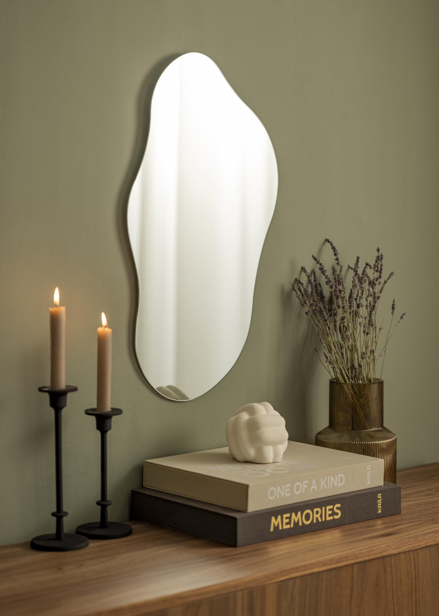 Suchst du noch einen schönen, dekorativen Wandspiegel, vielleicht einen Wohnzimmerspiegel oder Flurspiegel, der einen echten Blickfang ausmacht, viel Licht reflektiert, den Raum optisch erweitert und insgesamt aufwertet? Der Wohnspiegel Soft Cloud ist ein 35x60 cm großer Wandspiegel, der überall funktioniert. Der Spiegel ist mit 4 mm dünnem Spiegelglas recht flach gehalten und zeichnet sich durch das elegante, wogen- bzw. wolkenförmige Design mit fließenden, geschmeidigen Rundungen aus. Mit Hilfe der Wandhalterungen auf der Rückseite lässt sich der Spiegel an der Wand aufhängen.