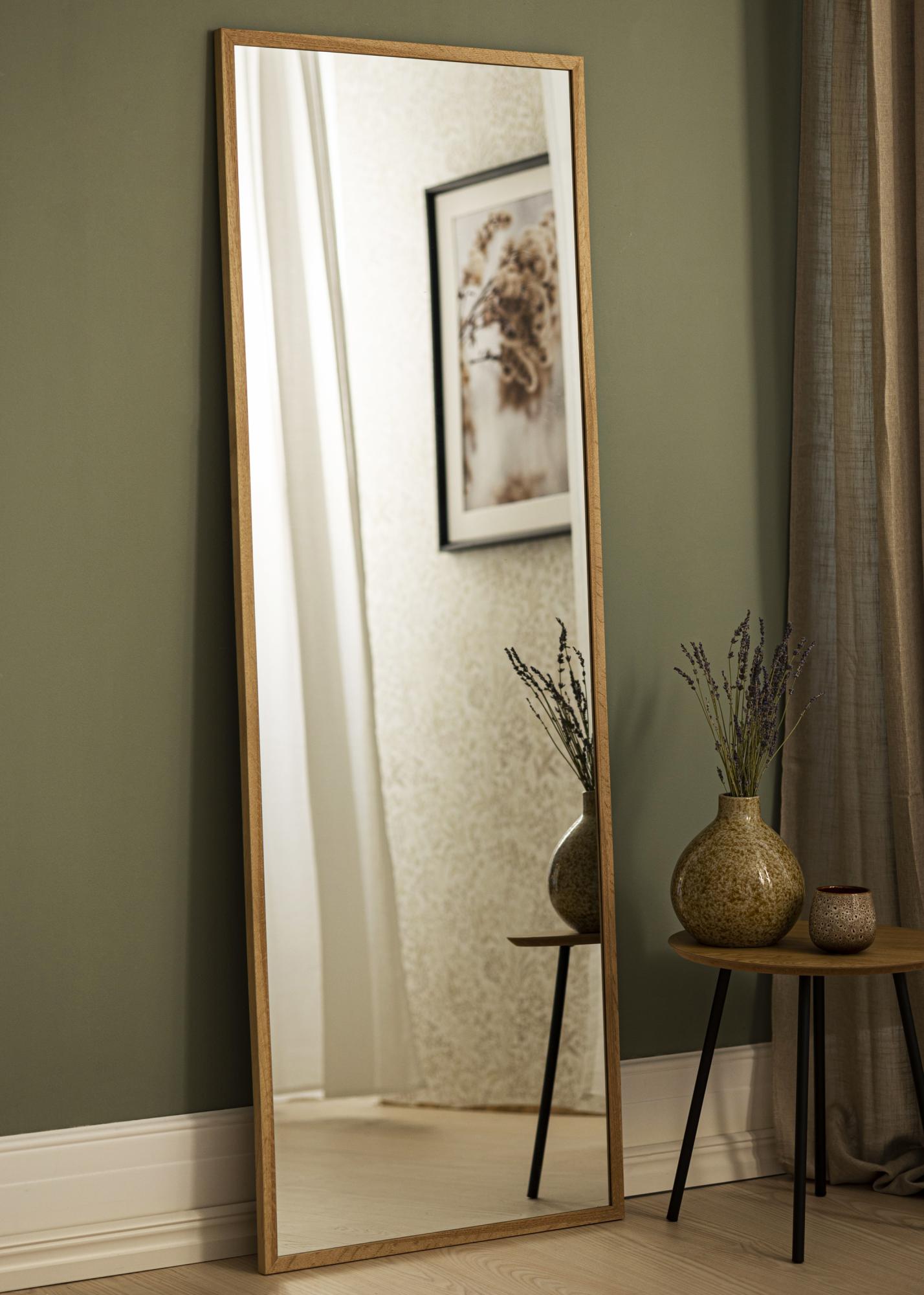 Entdecken Sie die elegante Einfachheit unseres stehenden Spiegels, perfekt dimensioniert für eine vollständige Reflexion. Mit den Maßen 62x168 cm ist dieser Spiegel ein praktisches und stilvolles Einrichtungselement, das perfekt in Schlafzimmer, Flure oder Ankleidezimmer passt. Der natürliche Eichenrahmen sorgt für eine warme und gemütliche Atmosphäre im Raum, während die strapazierfähige Konstruktion eine lange Lebensdauer garantiert.