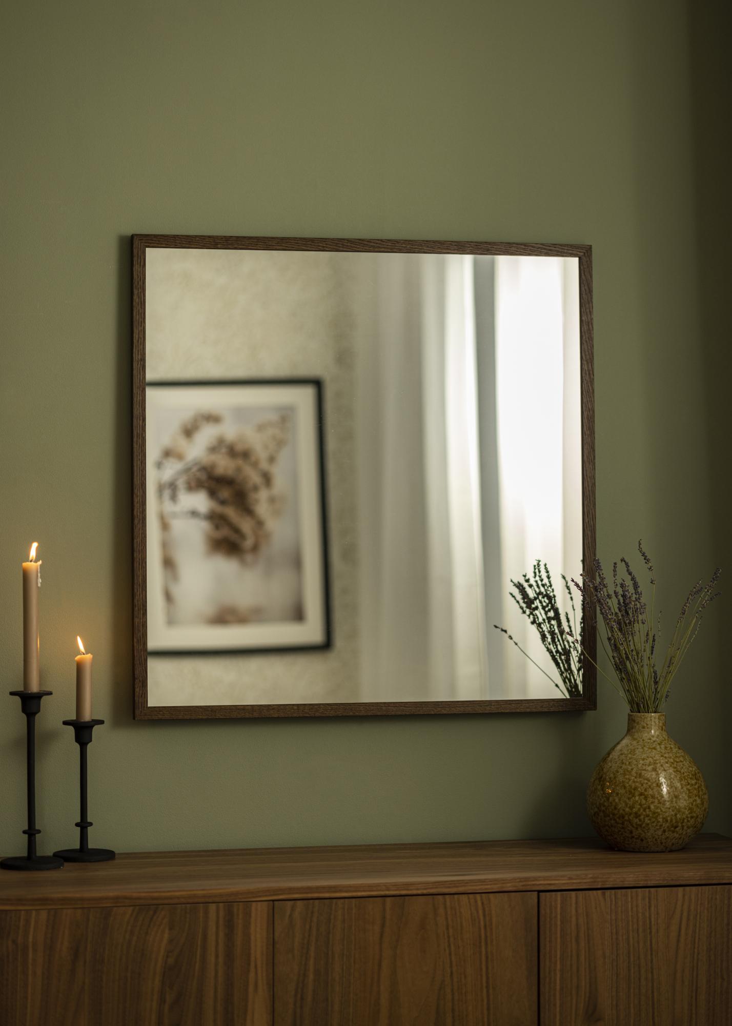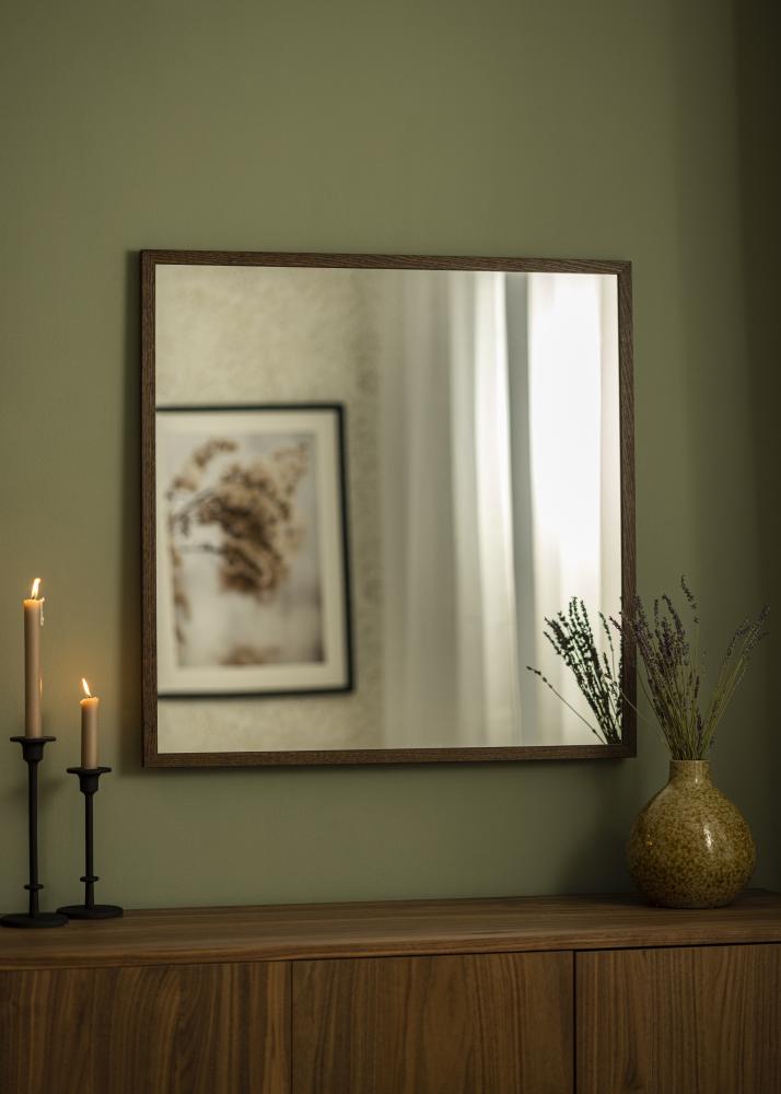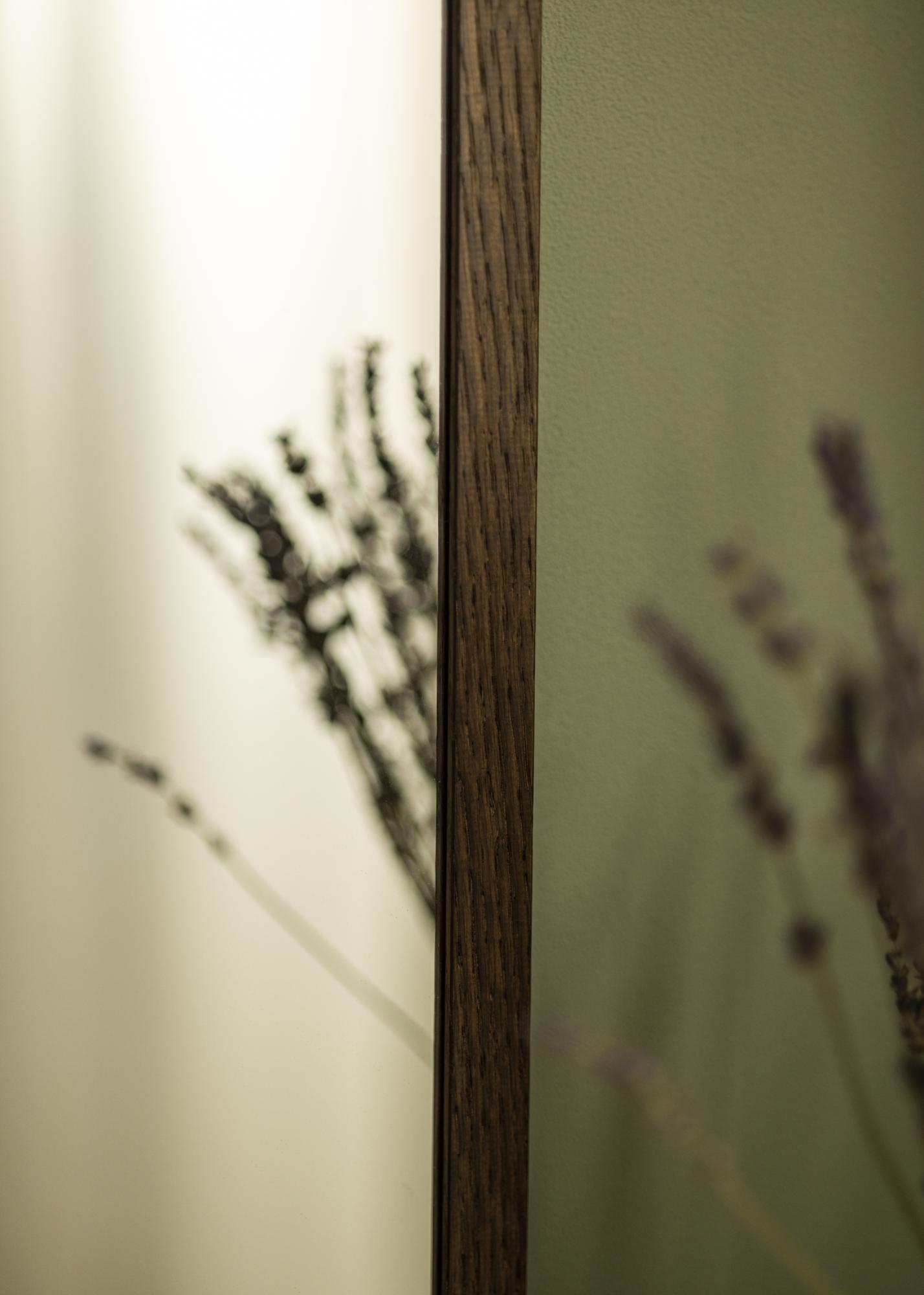 Entdecken Sie die stilvolle Eleganz unseres rechteckigen Spiegels, perfekt gestaltet, um Ihr Zuhause mit einer Prise klassischer Schönheit zu bereichern. Mit seinen großzügigen Maßen von 78x78 cm bietet der Spiegel eine praktische und dekorative Funktion in jedem Raum. Der dicke Rahmen, aus echtem Eichenholz gefertigt, hat einen tiefen dunklen Eichenfarbton, der sofort zum Blickfang wird und eine warme und einladende Atmosphäre schafft.