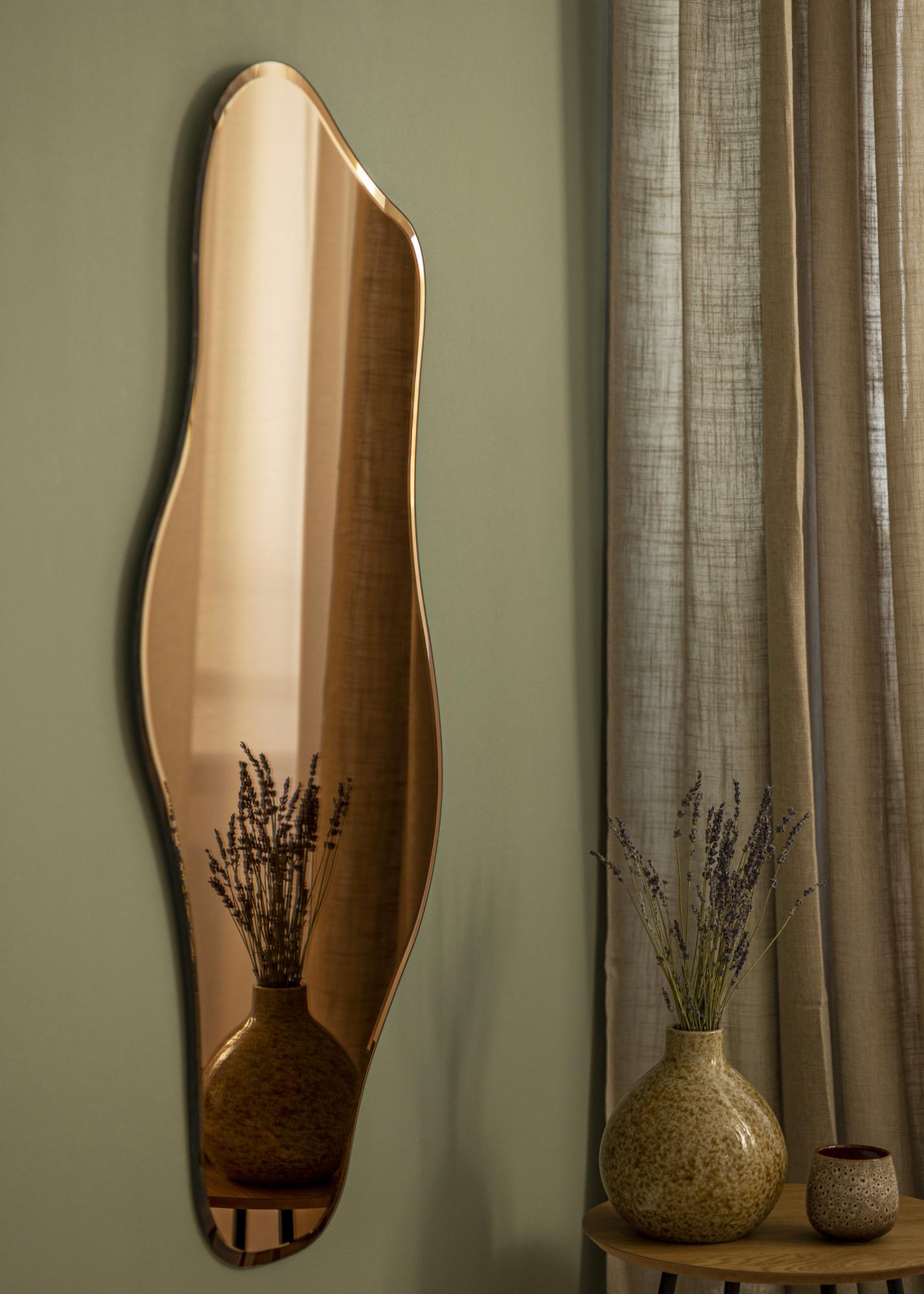 Entdecken Sie den eleganten und modernen Spiegel, der eine perfekte Kombination aus Stil und Funktionalität bietet. Mit seinen großzügigen Maßen von 55x110 cm bietet dieser Spiegel eine großzügige Reflexionsfläche, die sowohl im Flur als auch im Schlafzimmer oder Wohnzimmer ideal passt. Die Form des Spiegels ist strömungsgünstig und organisch, was der Einrichtung ein weiches und zeitgenössisches Gefühl verleiht.