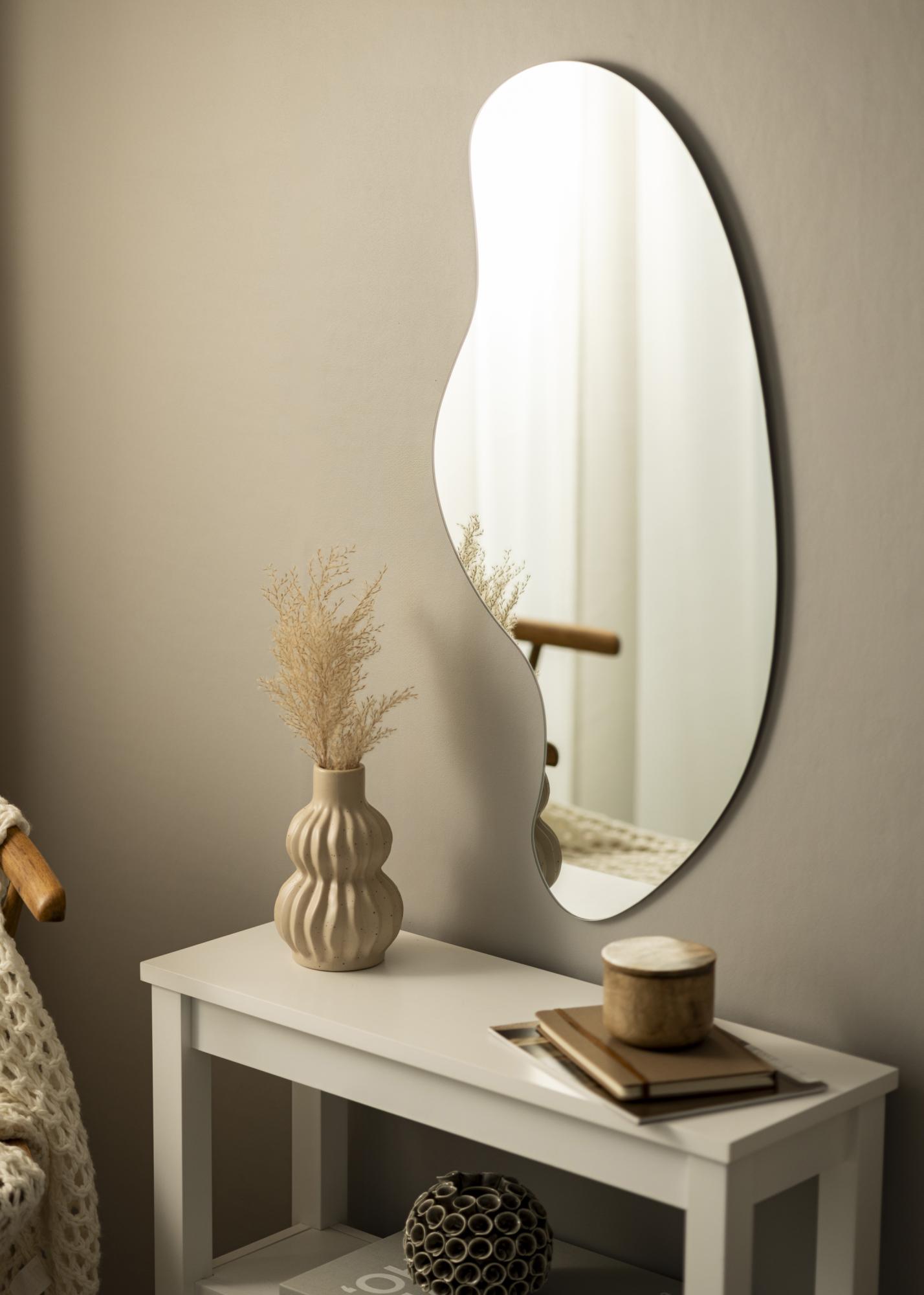 Der Spiegel Wavy Cloud ist ein Wandspiegel in ungewöhnlichem Design und voller Eleganz - optimal für alle, die einen individuellen Einrichtungsgegenstand suchen. Die besondere, fließend weiche Formgebung dieses Wohnspiegels wirkt trotz unterschiedlich geformter Seiten - mit einer klassisch runden, bogenförmigen Seite und einer wogenförmigen Seite - harmonisch und formvollendet. Der moderne Wandspiegel kommt ohne Rahmen aus und ist mit dem 4 mm dünnen Spiegelglas recht flach gehalten, womit der elegante, ausgesuchte Charakter dieses Spiegels noch zusätzlich verstärkt wird. Die Größe des Spiegels beträgt 40x80 cm.