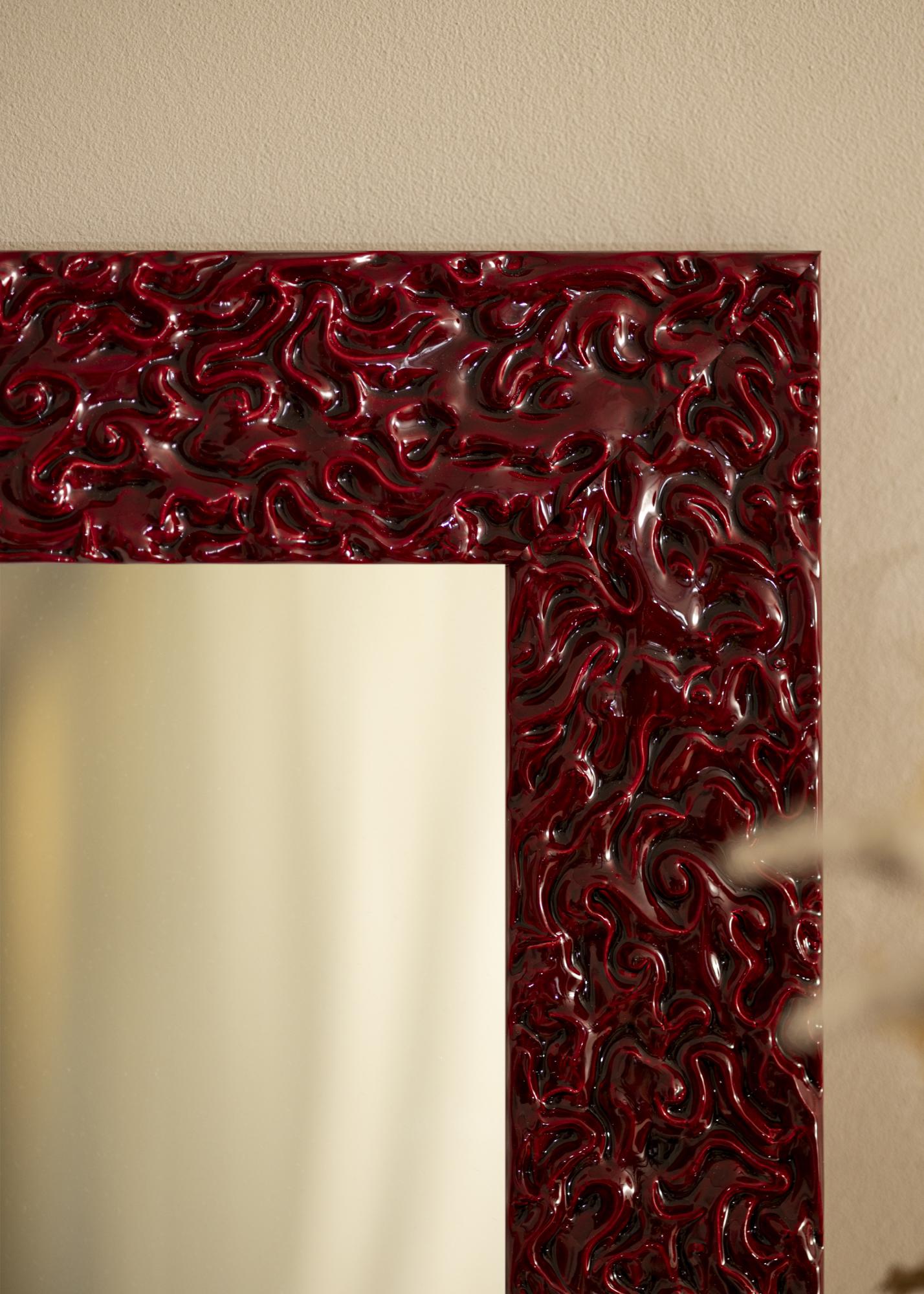 Der Spiegel Westminster Rot ist ein maßgefertigter Spiegel, der von uns hergestellt wird, um genau Ihren Bedürfnissen zu entsprechen. Mit seiner kräftigen und lebendigen roten Farbe wird er zu einem auffälligen Element in jedem Raum. Die lackierte Oberfläche verleiht dem Spiegel ein glänzendes Finish, das seine einzigartige, organische Reliefstruktur betont. Dies verleiht eine dramatische und moderne Note, die garantiert alle Blicke auf sich zieht.