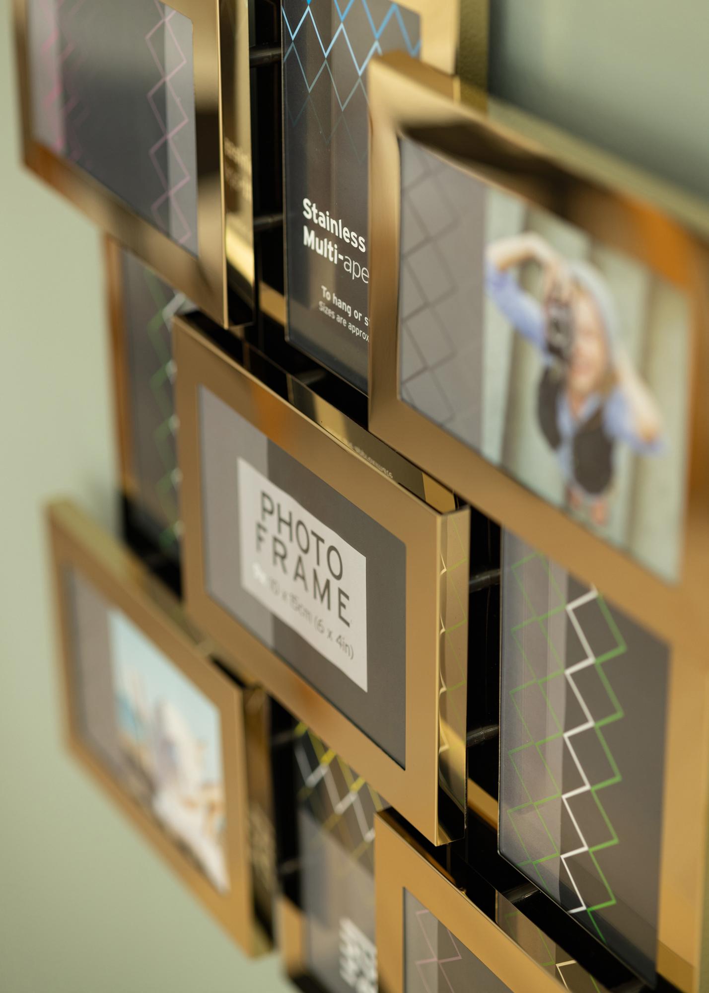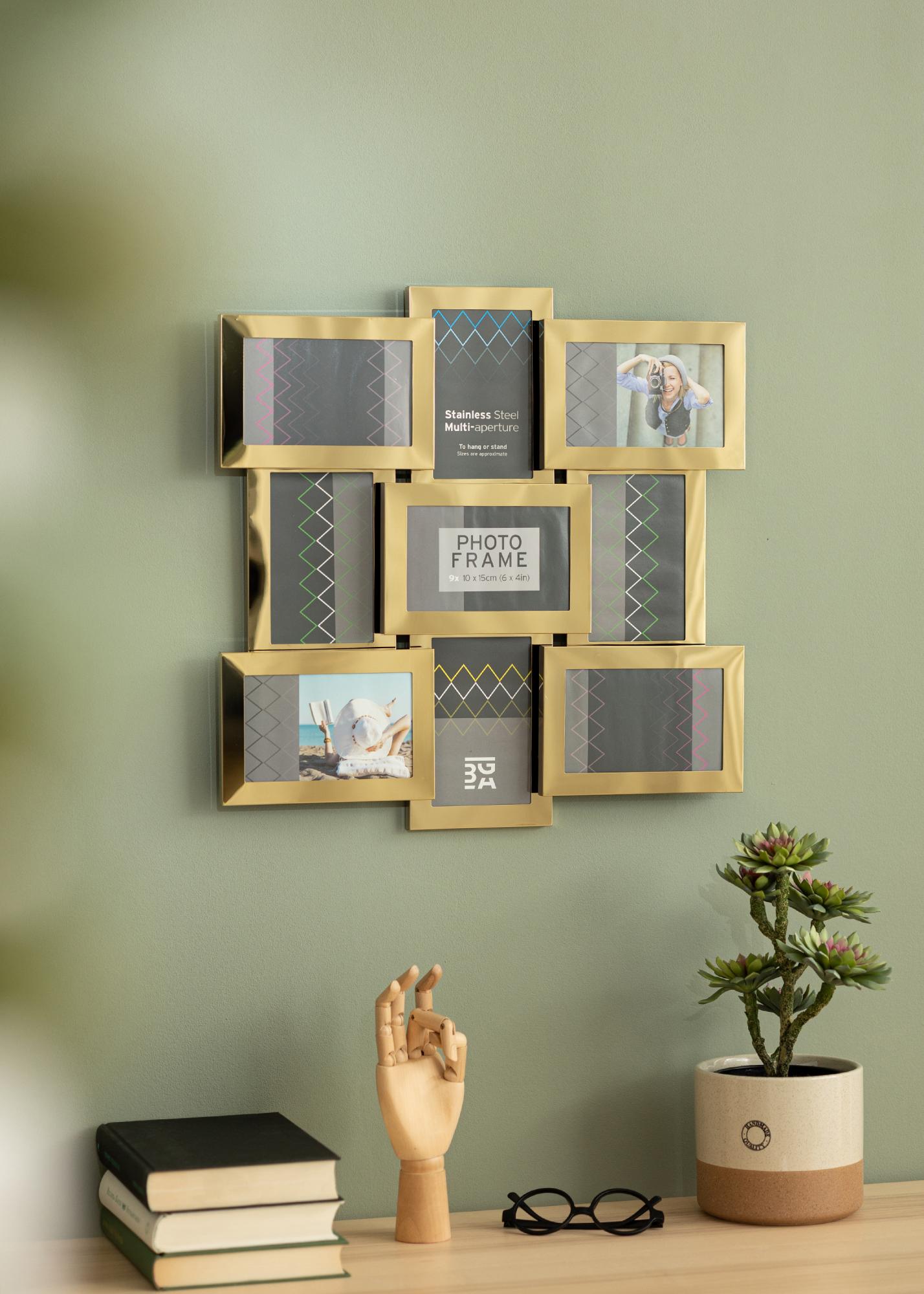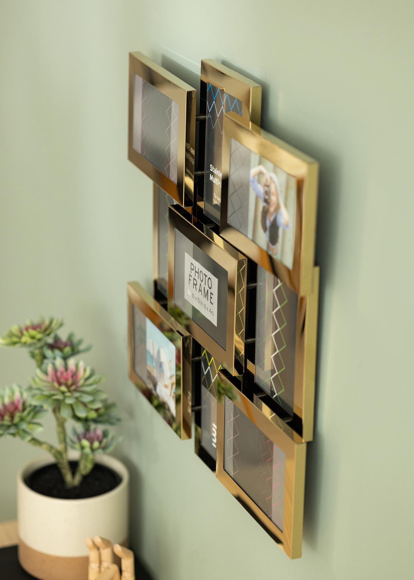 Stainless Steel Collage-Rahmen Gold - 9 Bilder