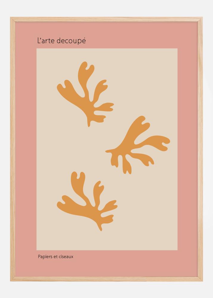 Entdecken Sie die subtile Schönheit minimalistischen Designs mit unserer neuesten Kollektion von Postern. Dieser elegante Druck, betitelt 'L'arte découpé', präsentiert ein Trio abstrakter Formen, die an Korallen oder Meeresvegetation erinnern, ausgeführt in einer warmen Palette aus Aprikosen- und Beigetönen auf einem beruhigenden cremefarbenen Hintergrund. Diese organischen Formen sind präzise ausgeschnitten und schweben über die Oberfläche, was ein Gefühl von Bewegung und Freiheit schafft. Perfekt für diejenigen, die ihrem Zuhause oder Büro einen Hauch von raffinierter Einfachheit hinzufügen möchten, ist dieser Druck eine Aussage moderner Ästhetik.