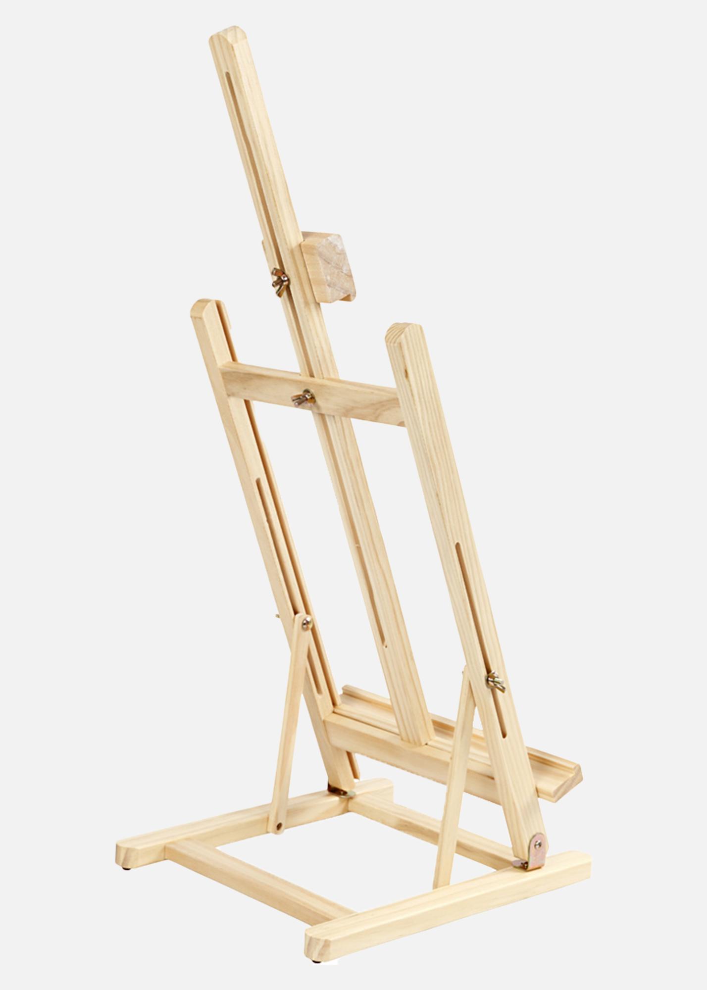 Diese stabile Tischstaffelei ist eine ausgezeichnete Wahl für Künstler, die bequem an einem Tisch oder einer Arbeitsfläche arbeiten möchten. Mit einer Höhe von 76 cm und einer Breite von 27,5 cm bietet sie viel Unterstützung für Leinwände und Skizzen in verschiedenen Größen.