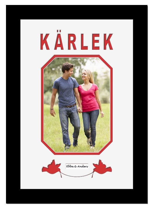 Ein schlichter Bilderrahmen mit romantischem Passepartout, der Platz für ein Bild und den Namen des Liebespärchens bietet.