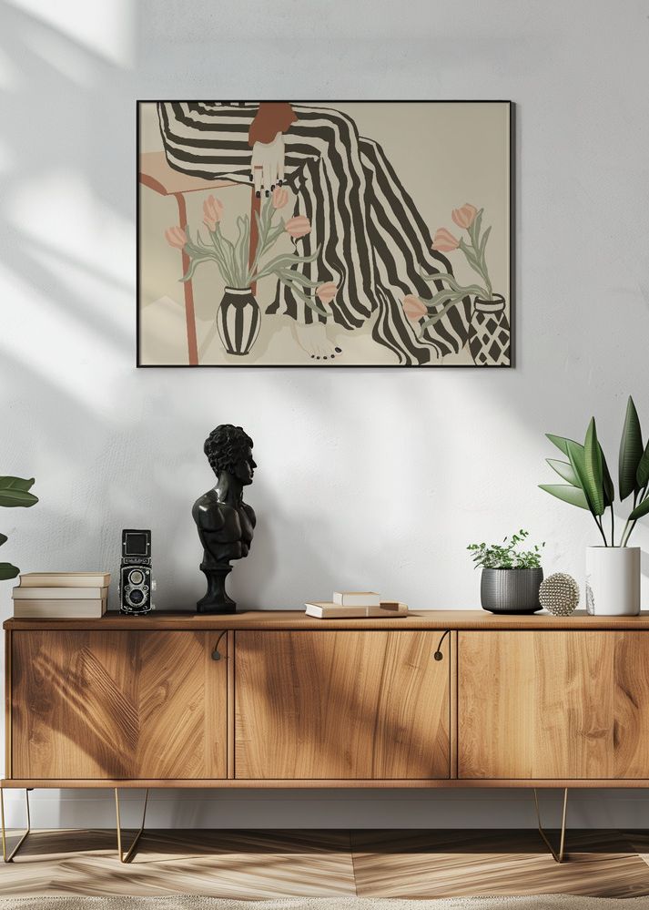 Trendy Poster, das wunderbar mit anderen Bildern kombiniert werden kann, z.B. für eine tolle Bilderwand. Und warum nicht mit einem passendem Bilderrahmen komplettieren Rahmen oder Posteraufhänger.