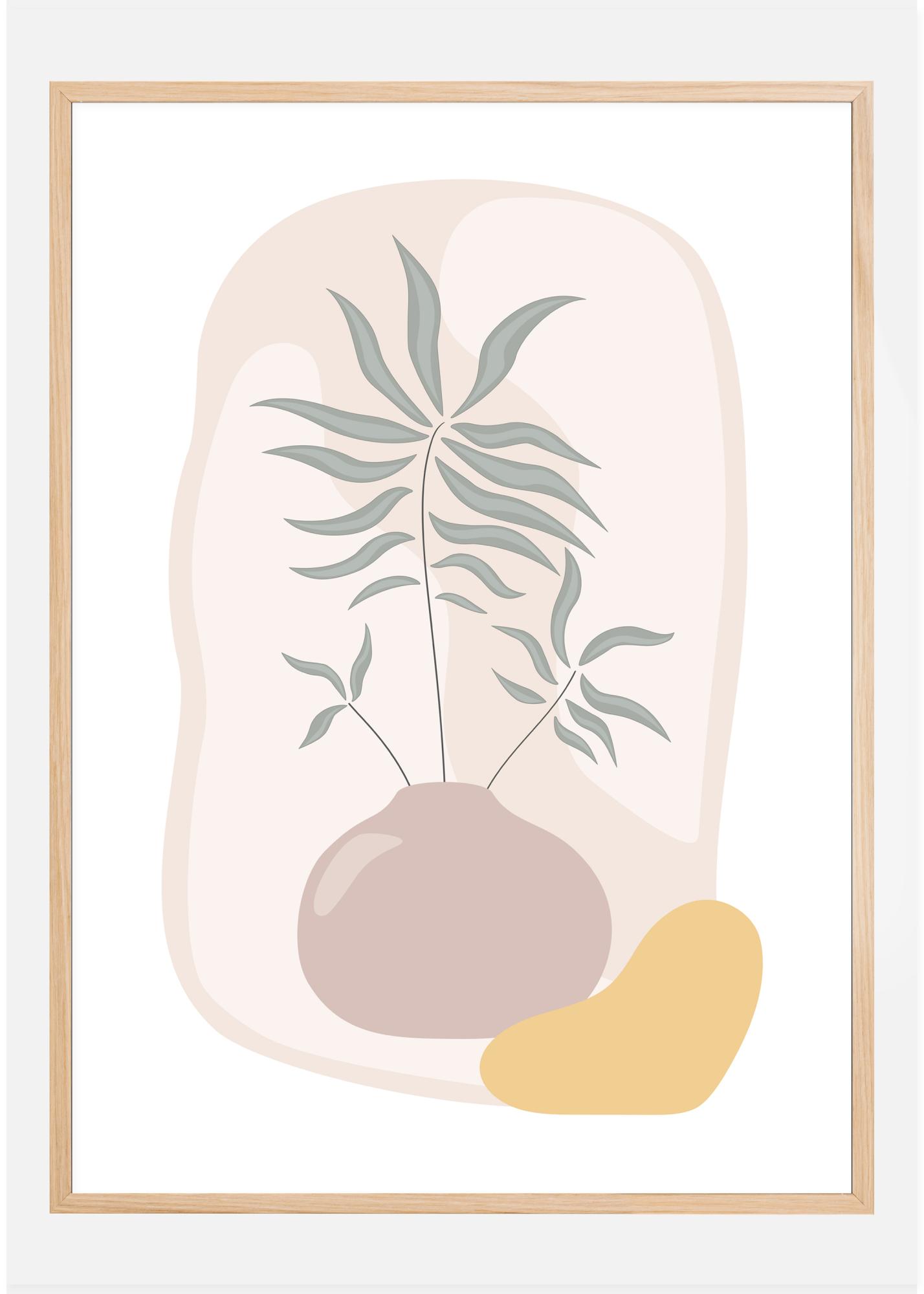 Ein stilisiertes Poster einer Vase, aus der eine grüne Pflanze herausragt. Andere seltsame Formen und Farben füllen den Hintergrund und machen es zu einem interessanten, aber etwas abstrakten Werk. Kombinieren Sie es mit einer ähnlichen Zeichnung, um zu Hause eine eigene Mini-Galerie zu erstellen.