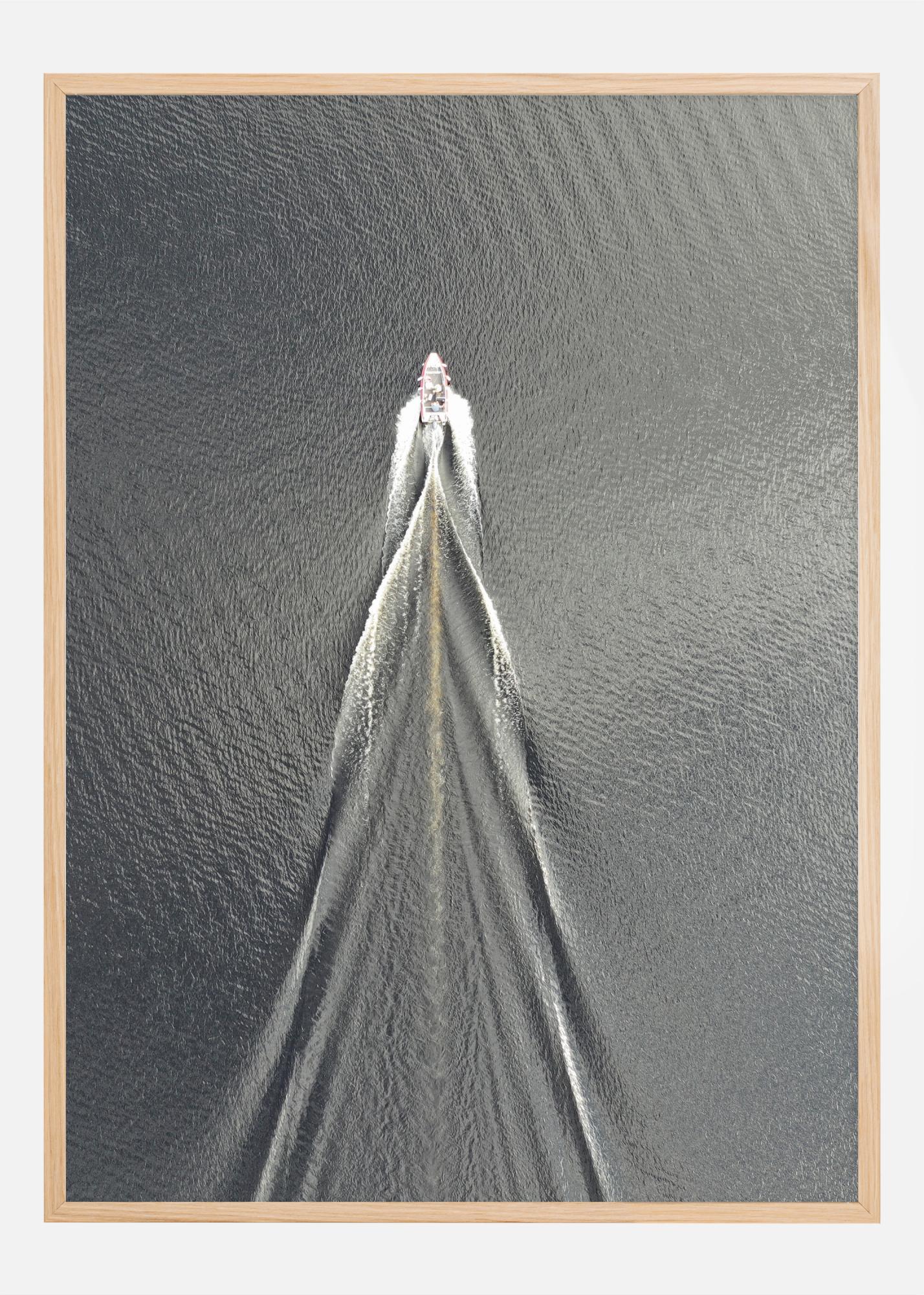 Das Poster "Usain Boat" fängt die Essenz von Geschwindigkeit und Freiheit ein. Ein kraftvolles Motorboot schneidet durch das ruhige Wasser und hinterlässt eine beeindruckende Kielwasserlinie als deutliches Zeichen seiner Geschwindigkeit. Der Kontrast zwischen dem dunklen, fast texturierten Wasser und dem weißen Schaum schafft eine visuelle Dynamik, die sowohl beruhigend als auch inspirierend ist.