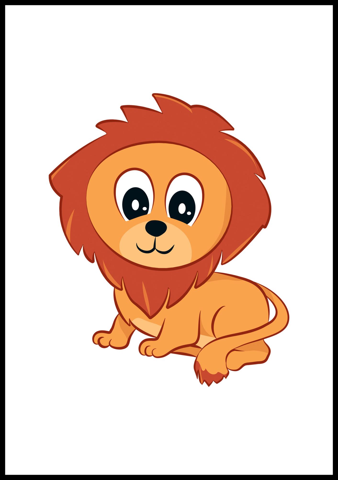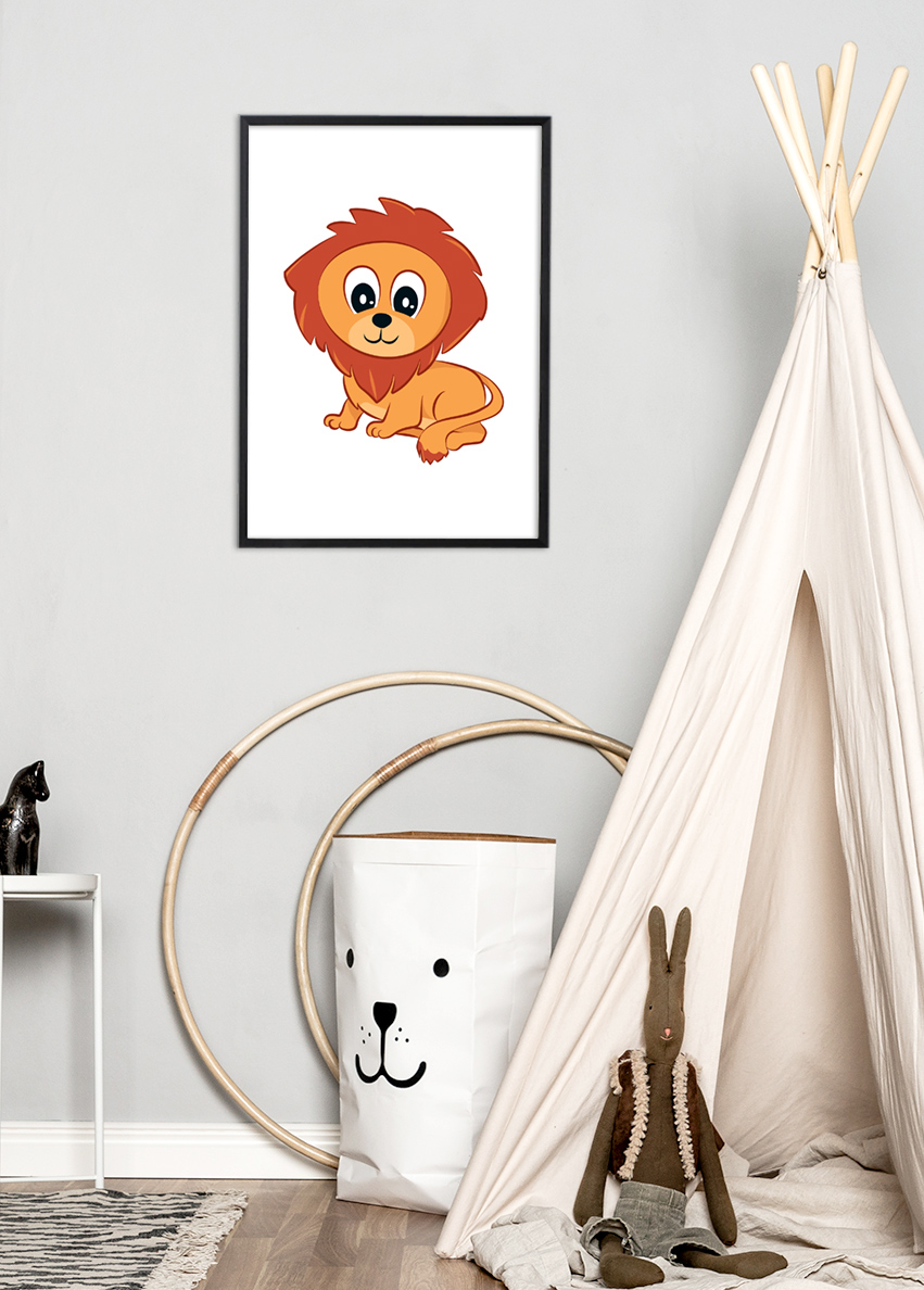 Der Löwe ist ein sehr spannendes Tier, da er eine lange, glatte Mähne hat und sehr laut brüllen kann! Dieses Poster bildet das Motiv eines süßen, kleinen Löwen mit freundlichen Augen und einem langen Schwanz ab. Da es in verschiedenen Größen erhältlich ist, finden Sie mit Leichtigkeit eines, das an die Wand oder auf den Nachttisch im Kinderzimmer passt. Ergänzen Sie das Poster gerne mit einem schwarzen oder weißen Rahmen, um das Motiv zu unterstreichen.