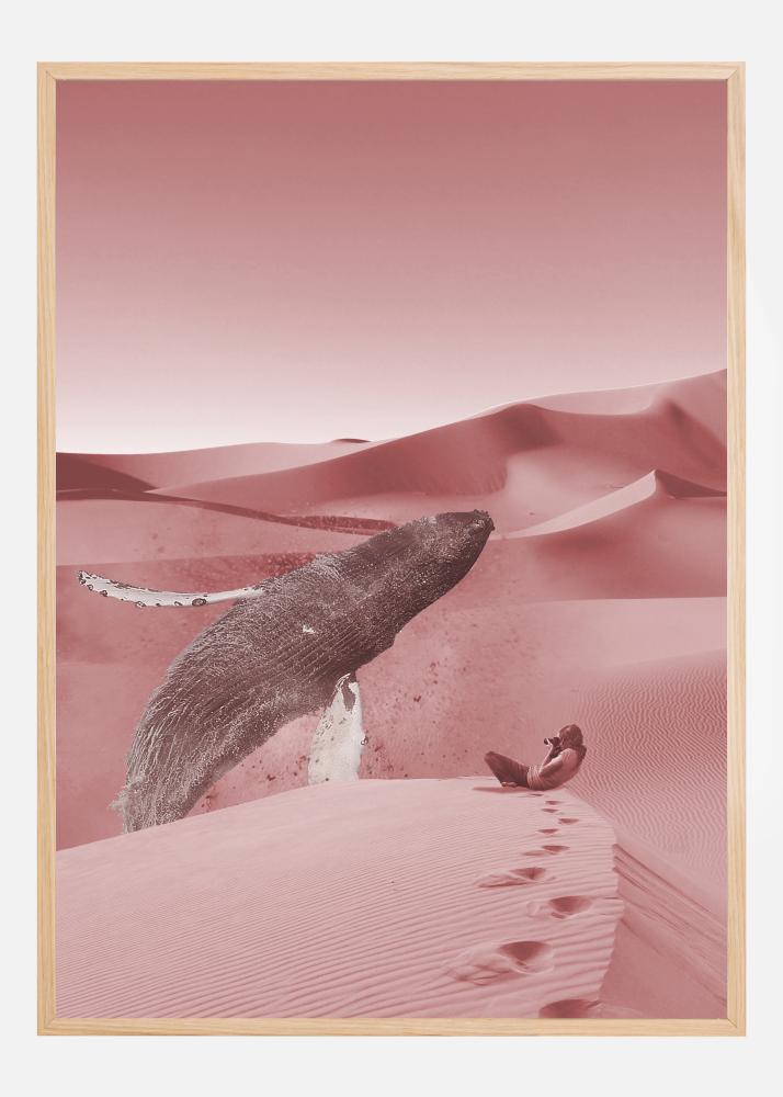 Träumen Sie sich in eine surreale Welt mit diesem künstlerischen Poster, wo ein mächtiger Wal aus der wechselnden Landschaft der rosa Sanddünen emporsteigt. Diese unerwartete Kombination aus dem Riesen des Meeres und den welligen Hügeln der Wüste stellt die Realität in Frage und lockt den Betrachter in eine Fantasiewelt. Der rosa Ton, der das Bild durchströmt, vermittelt ein Gefühl von Ruhe und Verspieltheit, während die klaren Fußspuren uns in eine Geschichte führen, die darauf wartet, erkundet zu werden.