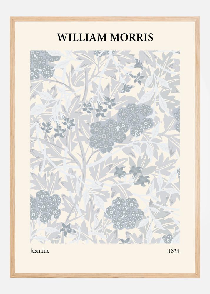 Dieses stilvolle und beruhigende Poster von William Morris, betitelt "Jasmine", strahlt ein Gefühl von Ruhe und Reinheit aus. Das Muster ist eine nuancenreiche Interpretation eines blühenden Gartens, mit Jasminblüten und Blättern in Schattierungen von Hellblau und Grau, die wunderschön vor einem klaren und beruhigenden cremefarbenen Hintergrund platziert sind. Dieser Druck ist eine Hommage an Morris' Liebe zur Natur und seine Fähigkeit, deren Schönheit in seinen Mustern einzufangen.