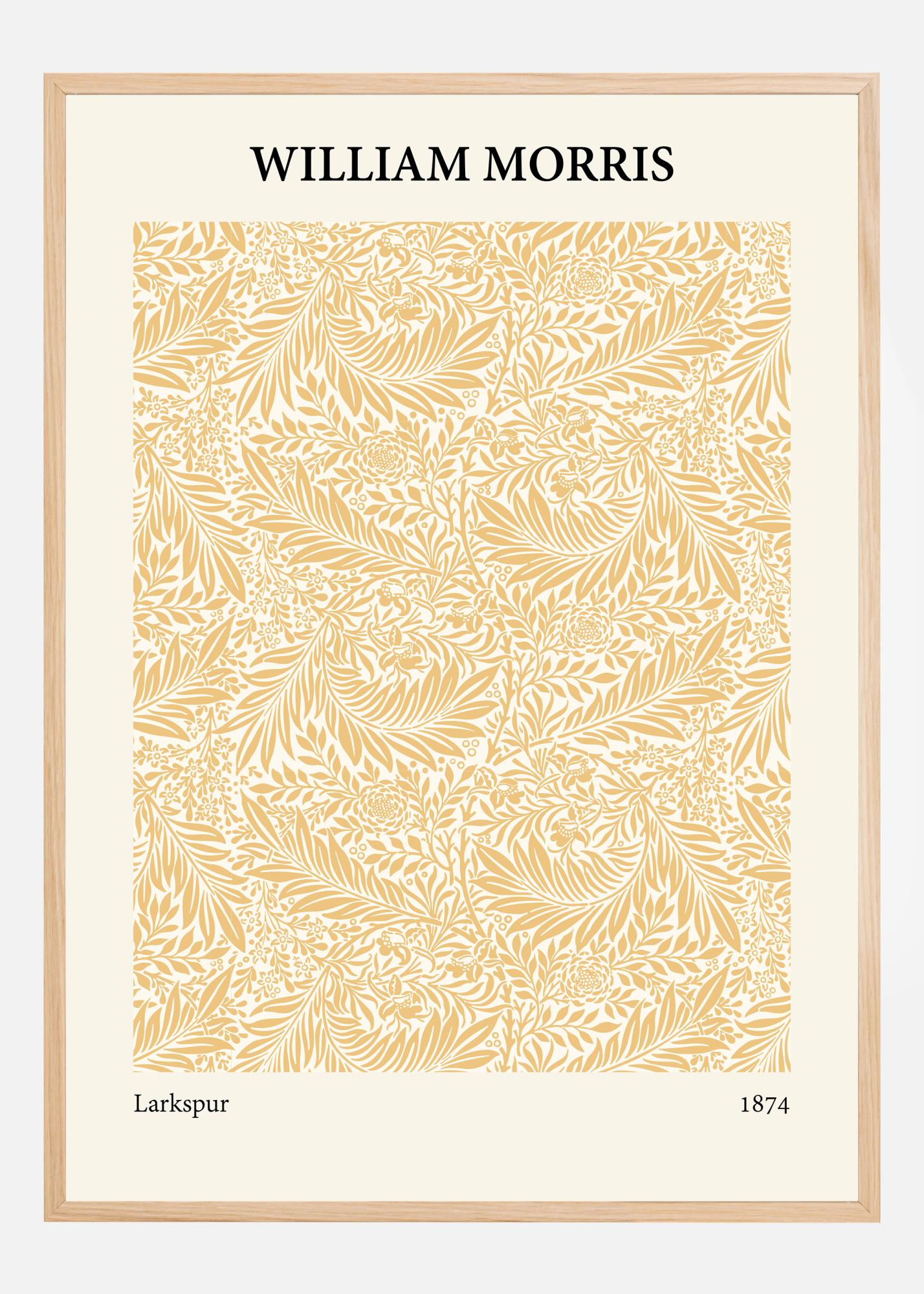 Mit seinem warmen, monochromen Goldton reproduziert dieses Poster das üppige Design von William Morris' "Larkspur" aus dem Jahr 1874. Die reiche Komposition aus Blättern und Blumen tanzt über das Papier und veranschaulicht das Können und die Präzision, für die Morris in der Arts-and-Crafts-Bewegung bekannt ist. Dieses Poster vermittelt ein Gefühl von Wärme und Sonnenschein in jedem Raum und ist eine wunderbare Hommage an das Kunsthandwerk der viktorianischen Ära.