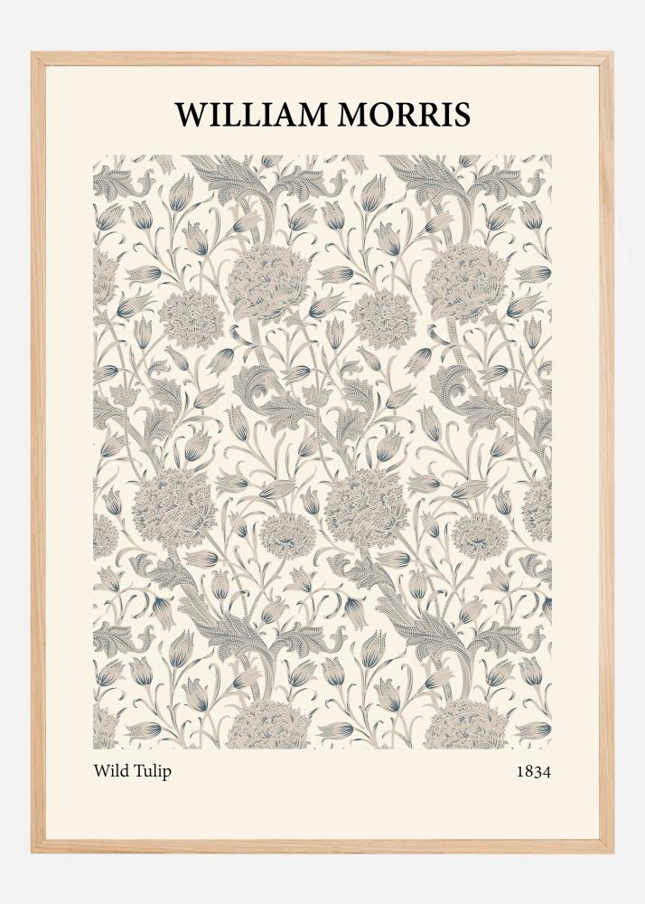 Dieses William Morris-Poster mit dem Namen "Wild Tulip" ist eine elegante Interpretation von Wildblumen, die mit großer Geschicklichkeit und Sorgfalt zusammengestellt wurde. Das Muster ist ein Labyrinth aus Tulpen und Blättern, ausgeführt in subtilen Nuancen von Beige und Grau auf einem warmen, cremefarbenen Hintergrund, was es zu einem idealen Werk für diejenigen macht, die eine entspannte und anspruchsvolle Umgebung schaffen möchten. Der Detailreichtum der Illustrationen demonstriert Morris' meisterhafte Hand und seine Fähigkeit, alltägliche Ansichten in Kunst zu verwandeln.