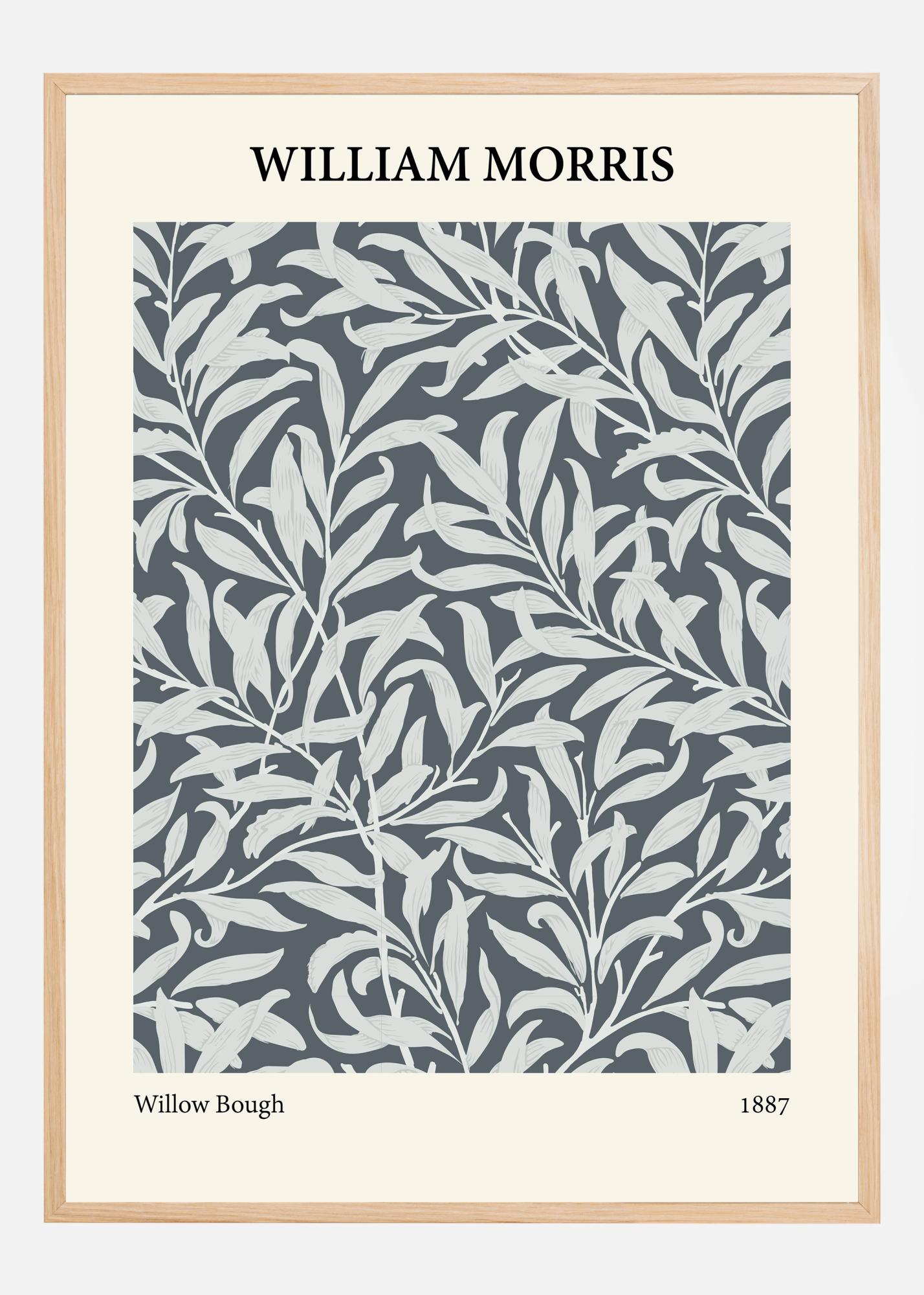 Dieses stilvolle Poster zeigt William Morris' bekanntes Muster "Willow Bough" von 1887, ein Muster, das weiterhin mit seinem zeitlosen Design fasziniert. Es hat eine anspruchsvolle Palette aus tiefen Blau- und hellen Grautönen, die ein Gefühl von sowohl Modernität als auch klassischer Eleganz schaffen. Jedes Weidenblatt ist mit der Genauigkeit und Liebe zum Detail dargestellt, für die Morris berühmt ist.