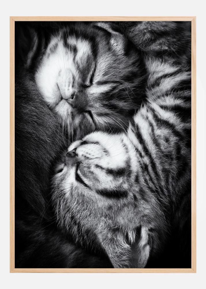 Ein niedliches Tierposter von zwei schlafenden Kätzchen, die sich umschlingen. Holen Sie sich dieses Poster nach Hause und genießen Sie das Gefühl einer Umarmung, wenn Sie diese süßen, aneinander gekuschelten Katzen betrachten.